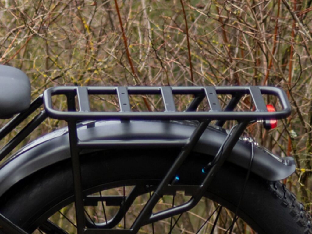 The Hunter 2.0S is built with a high-carbon steel frame, designed for durability and load support. The integrated rear rack supports cargo needs, while fenders help protect against mud and splashes.